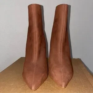 I'm clearing out my closet and letting go of these stylish Steve Madden boots. Purchased on clearance, they feature a chic brown faux suede finish with a pointed toe and stiletto heel. The zip-up design ensures a snug fit, perfect for elevating any fall or winter outfit. These boots were floor model and never been worn outside.