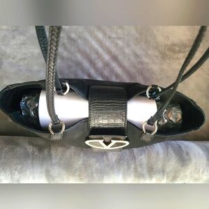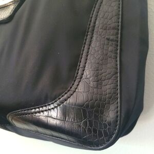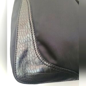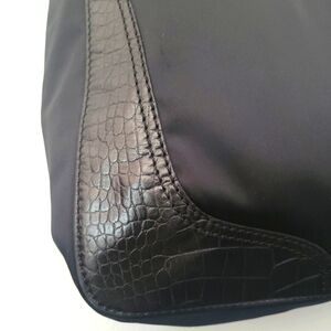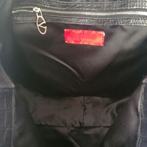 Rare Valentino GARAVANI Vlogo shoulder bag / tote in black nylon satin and croc embossed leather.Has silver tone cream and black enamel vlogo emblem and silver tone hardware. If you know then you know! this is Valentino Garavani not to be mistaken by Mario. High end luxury, not designer. Has slight spots on front nylon and some age cracking on straps. Straps still strong and sturdy. interior lined in nylon with1 zip pocket. Excellent condition. comes with COA and dust bag. Bag has been professionally cleaned