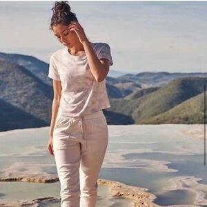 Athleta Gray Tie-Dye Short Sleeve Organic Cotton Daily Crew Cropped Tee XS