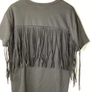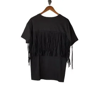 Rowdy Crowd Clothing Black T-Shirt With Fringe NWT