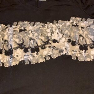 2 v-neck tees, gently used, back of shirt is approximately 1” longer than the front; front measure is taken from the bottom of the “V”