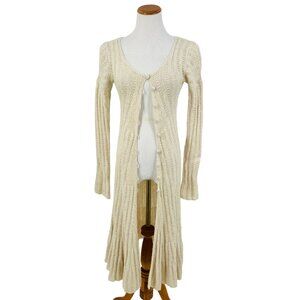 RARE VINTAGE Free People Ivory Long Knit Flowy Maxi Cardigan