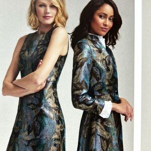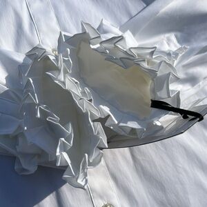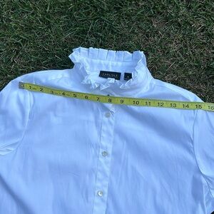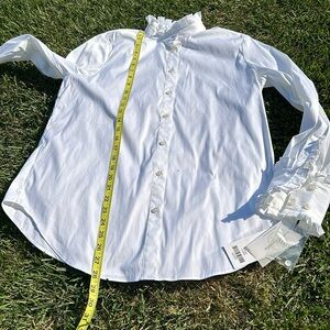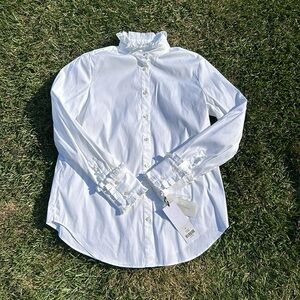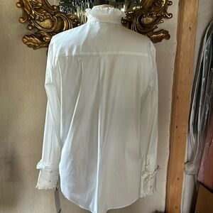 Brand new with tags never worn, pristine condition ruffled stand collar, gorgeous ruffled sleeves with double row buttons to adjust as needed around your wrist