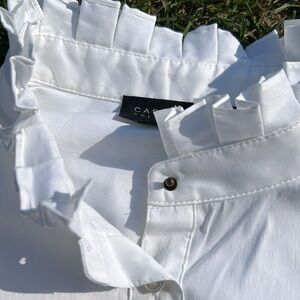 NWT Carlisle Althea WHITE Stretch cotton Ruffle Blouse