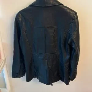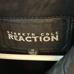 Kenneth Cole Reaction Black Leather Peacoat Jacket Womens Size medium