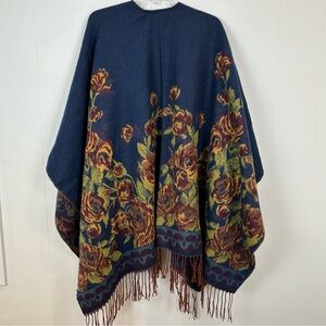 Cejon large print roses super soft oversized cape wrap open poncho with fringe. One size fits most. Never worn. In like new condition with no stains rips or tears. Super fast shipping from smoke free home. Reasonable offers always welcome!