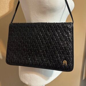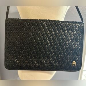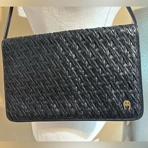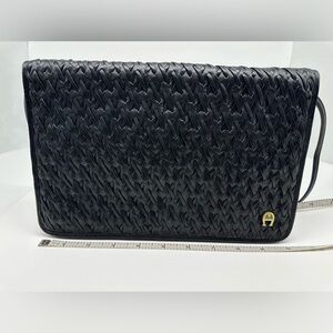 Etienne AIGNER Vintage Genuine Soft Buttery Leather Woven Crossbody Black Bag