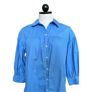 Maeve by Anthropologie Poplin Buttondown Shirt 3/4 Puffed Sleeve Blue Size Small