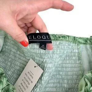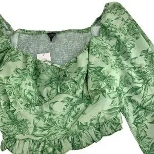 NWT Eloquii Green Floral Cropped Shirt with Long Balloon Sleeves. Size 20. Tie at chest. Smocked back.