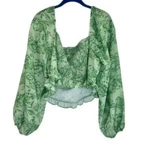NWT Eloquii Green Floral Cropped Shirt with Long Balloon Sleeves