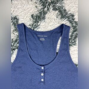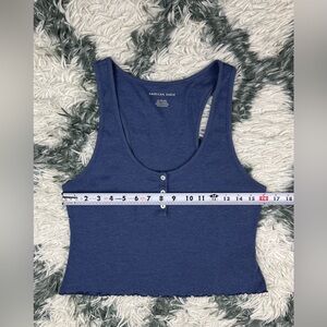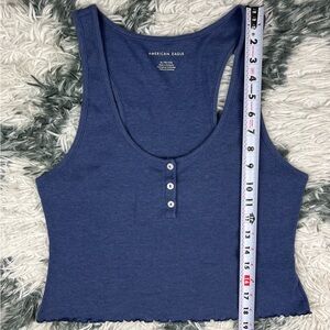 American Eagle Women's Henley True Tank Blue Size XLarge Cropped