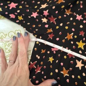 Hand-drawn floral star print in shades of pink and gold on a black base