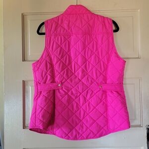 Crown & Ivy Vest Hot Pink W/ Gold Accents Size Large Zipper & Button Overlay EUC