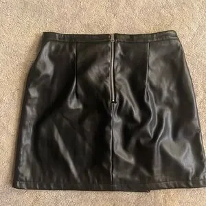 Black mini skirt fake leather. New no tag. Medium. With gold zipper and belt