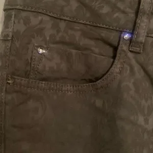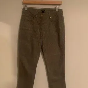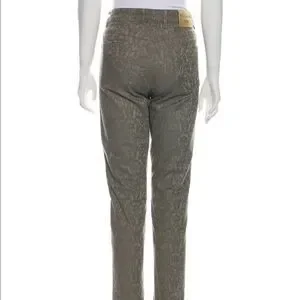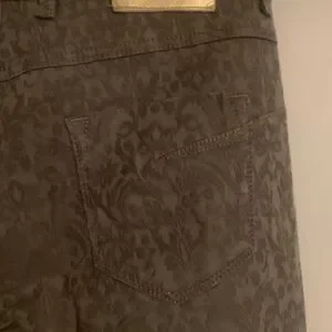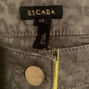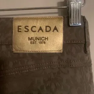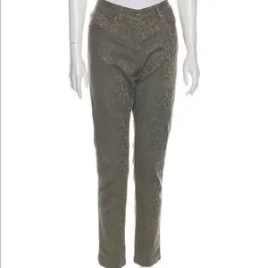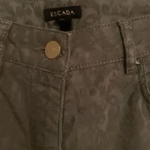 Escada straight leg stretch jeans olive green with Jewel and embellishments. 5 pocket.