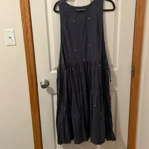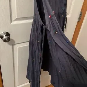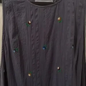 Blue sleeveless top (very long with slits) with colorful embroidery. Basically a dress with open sides. From urban outfitters