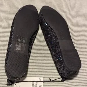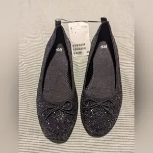 BNWT! Girls H&M size 3 ballet flats, black sparkle, bow embellishments.