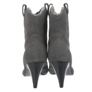 Sigerson Morrison 9.5 Suede Western Ankle Boot Shearling Fur Cone Heel Gray