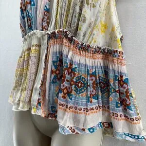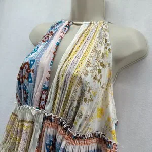 Free People Bellini Patchwork Halter Top Size L Spaghetti Straps Deep V-Neck