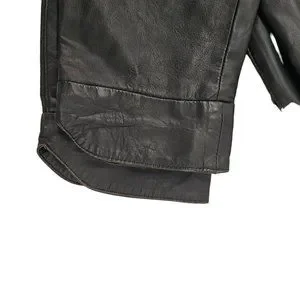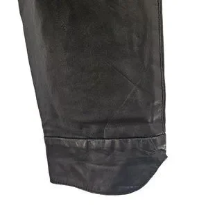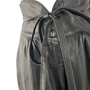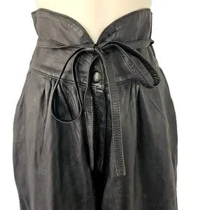 90s High Waist Leather Pants Laced Belt Slash Pockets Curved Hem Womens 26 Black