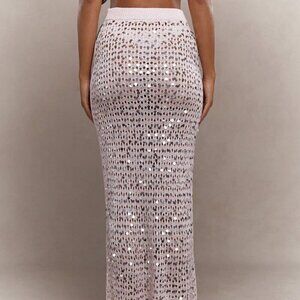 Baby Pink Casual Women's Mesh Crochet Sequin Embellish Maxi Skirt