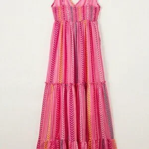 Hot Pink Boho Women's Western Geometric Tie Ruffle Halter Long Dress