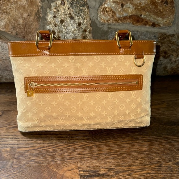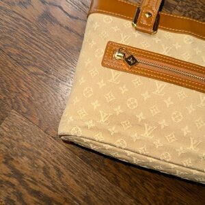 Authentic LOUIS VUITTON Monogram Mini Lucille PM Hand Bag (color Tan) (beige) small luggage tag included