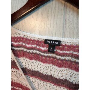 Torrid 2 Open Knit Cinched Front Sweater 3/4 Sleeves 2X Pink