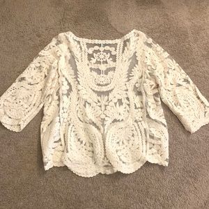 Sheer with crochet lace cream coloured overlay, wear with cami underneath