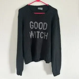 Wooden Ships Good Witch Knit Crew Sweater Top Halloween Black Sz L/XL