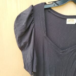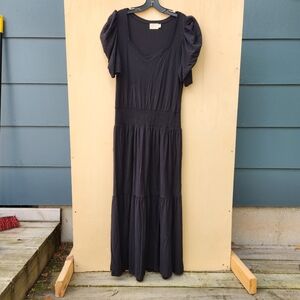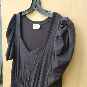 Great looking Nation LTD Black Thea Sweetheart dress. Size large. Pull-on styling with a smocked waist and slub knit jersey fabric. Short puff sleeves. Unlined. 100% pima cotton (has stretch). Made in Peru. Machine wash. EUC, no stains or signs of wear. This dress has a romantic feel to it and would be a great date-night feel to it! ... Comes from a non-smoking home.