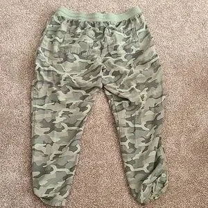 Excellent used condition army pants/camo pants from Maurices. Stretch waist with tie closure. Front and back pockets. Button tabs at bottom of each pant leg.