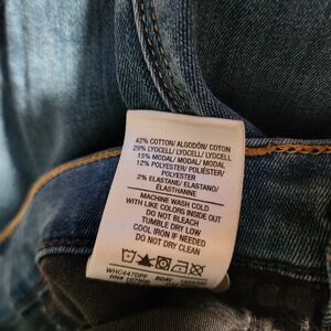 These Hudson Jeans have the hem removed on the legs. The fabric is 42% Cotton, 29% Lyocell, 15% Modal, 12% polyester and 2% Elastane, which makes them soft and stretchy. *Measurements are in photos.