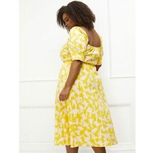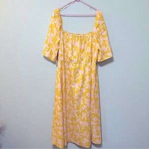 Eloquii Elements Yellow & Pink Floral Puff Sleeve Square Neck Midi Dress NWT 26