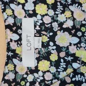 Loft flutter sleeve floral blouse, black floral, measures 20" pit topit, 25" shoulder to hem, in excellent condition with no flaws