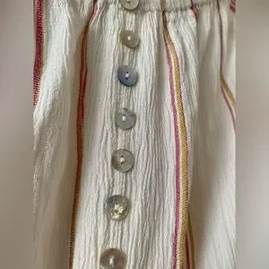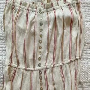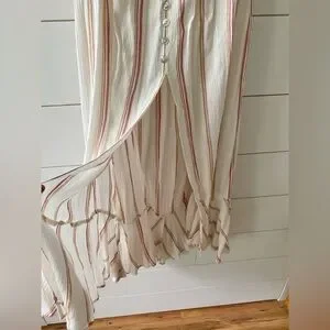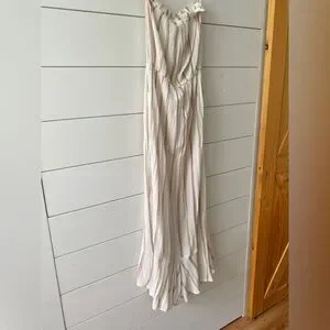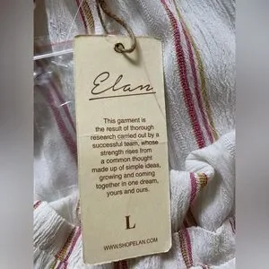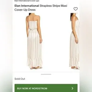 Brand new with tags. Elan International Strapless Stripe Maxi Cover-Up Dress. Cream colored with a red/yellow stripe. Gorgeous colors! Open front slit. SIZE: LARGE for Women. From a smoke free home.