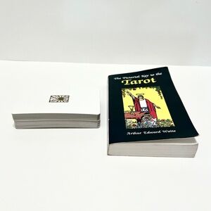 The book and the tarot deck are in great pre-loved condition. The cards have been slightly bent from age and use, but otherwise in beautiful condition. The book has minor staining on the edge of the pages, but does not affect readability. Please refer to the photos.