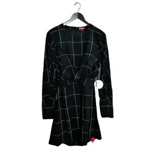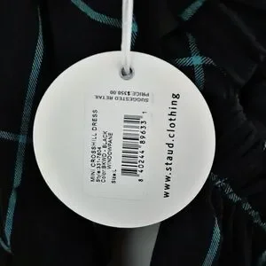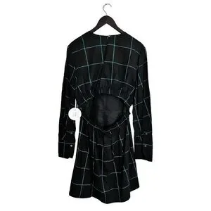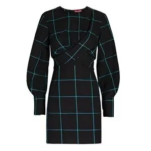 NEW Staud Black Windowpane Long Sleeve Cut Out Mini Crosshill Dress Size Large