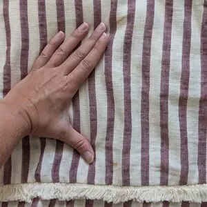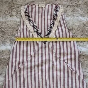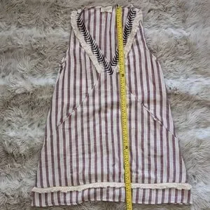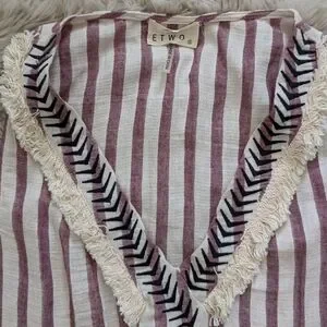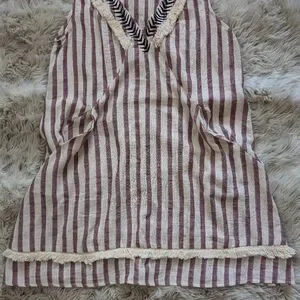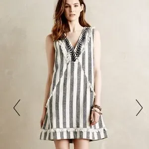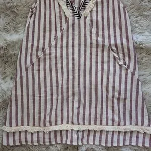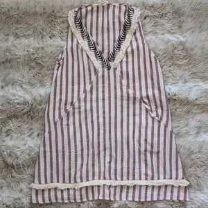 Stripped dress with fringe green ETWO. Such a cool dress! has pockets, thin/semi sheer, unlined. small marks on front, could possibly be removed with more talented hands. first picture is of similar dress.