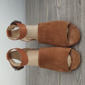 New Marc Fisher ROBE 2 Brown Genuine Suede Leather Open Toe Shoes Ankle Strap 9