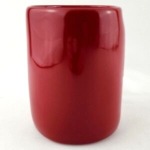 NEW Rae Dunn Artisan Collection by Magenta mug in glossy red with fun large white letters LOVE etched on one side, with a fun glossy red interior and a heart shaped handle.