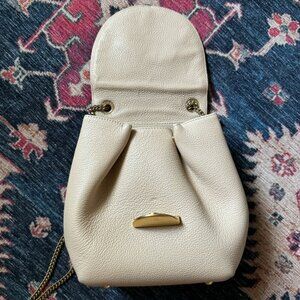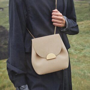 From Polene: Dimensions: 20.5 X 20 X 10 cm. Weight: 611 g. Chain length: 107 cm. Back pocket. Interior pocket. Magnetic closure. Made by leather goods artisans in Ubrique, Spain. Signature opening folds (adjustable with snaps) are held in place by hand stitching. Certified Spanish full-grain textured calf leather. Worn as a shoulder or crossbody bag. Certified Italian suede and Spanish textured calf leathers. 100% cotton twill lining.