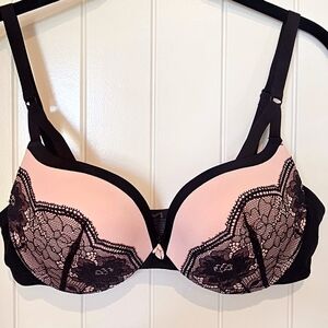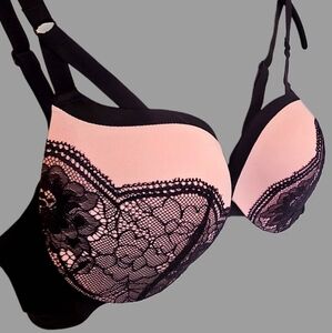 NWOT, New, Pink & Black Lace Push-Up Bra, Lightly-Padded for shape, Sz 36C