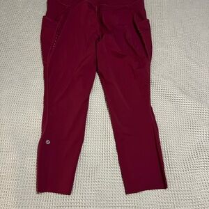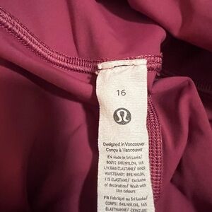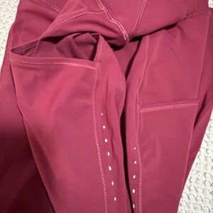 Lululemon fat and free leggings size 16, were altered to 23” by lululemon store. Washed mauve color, in new condition. Comes from smoke free home. Interior drawstring and interior and hip pockets.