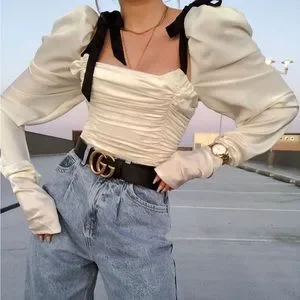 HOUSE OF CB 'Almaz' Ivory Puff Sleeve Bodysuit NWOT