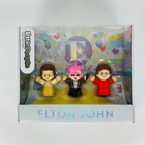 Adorable Elton John figures. Includes 3 figures in different costumes. Brand new in box.