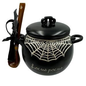 Rae Dunn Black Cauldron Hocus Pocus Spider Web Canister Spoon Set Bowl New 2024