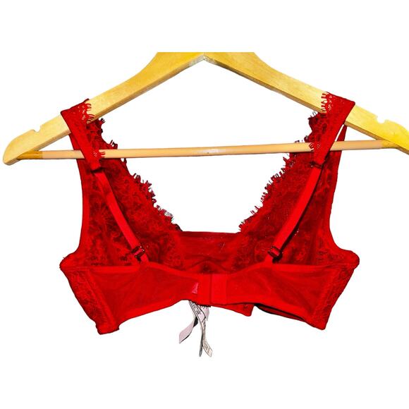 Victoria's Secret Unlined Plunge Red Lace Dream Angels Underwire