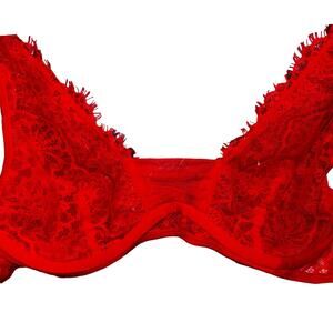 Victoria's Secret Sheer Plunge Red Lace Dream Angel Underwire Bra 32D Feminine