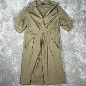 Lafayette 148 Dress Women’s Medium Green Knee Length Collar Ruched Casual